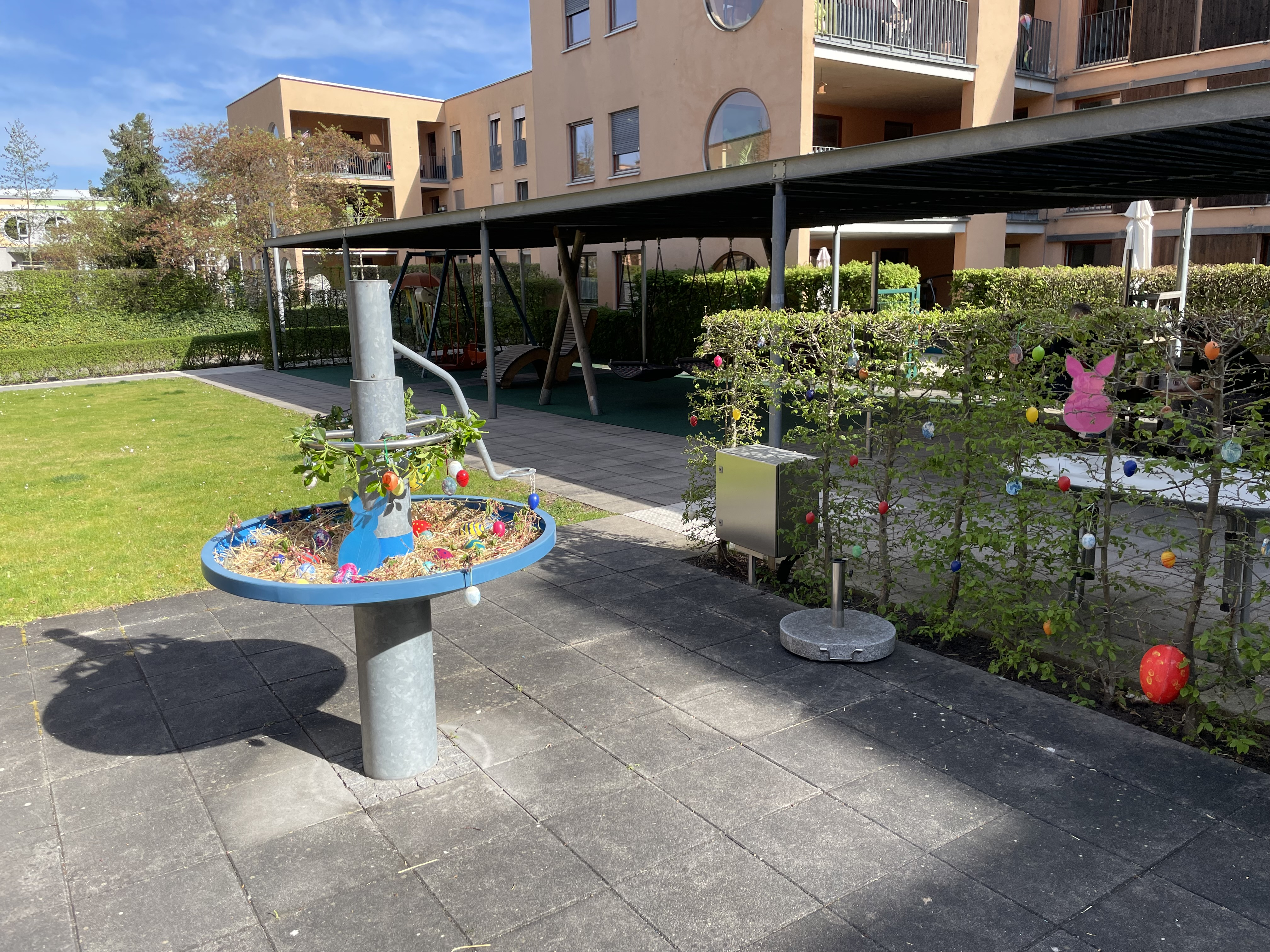 Um uns und die NWW in vorösterliche Stimmung zu bringen wurde der Brunnen am Agoraplatz mit verschiedenem Dekor verschönert. Dieses Jahr hat sich die Förderstätte dazu bereit erklärt dieses Vorhaben in die Tat umzusetzen.