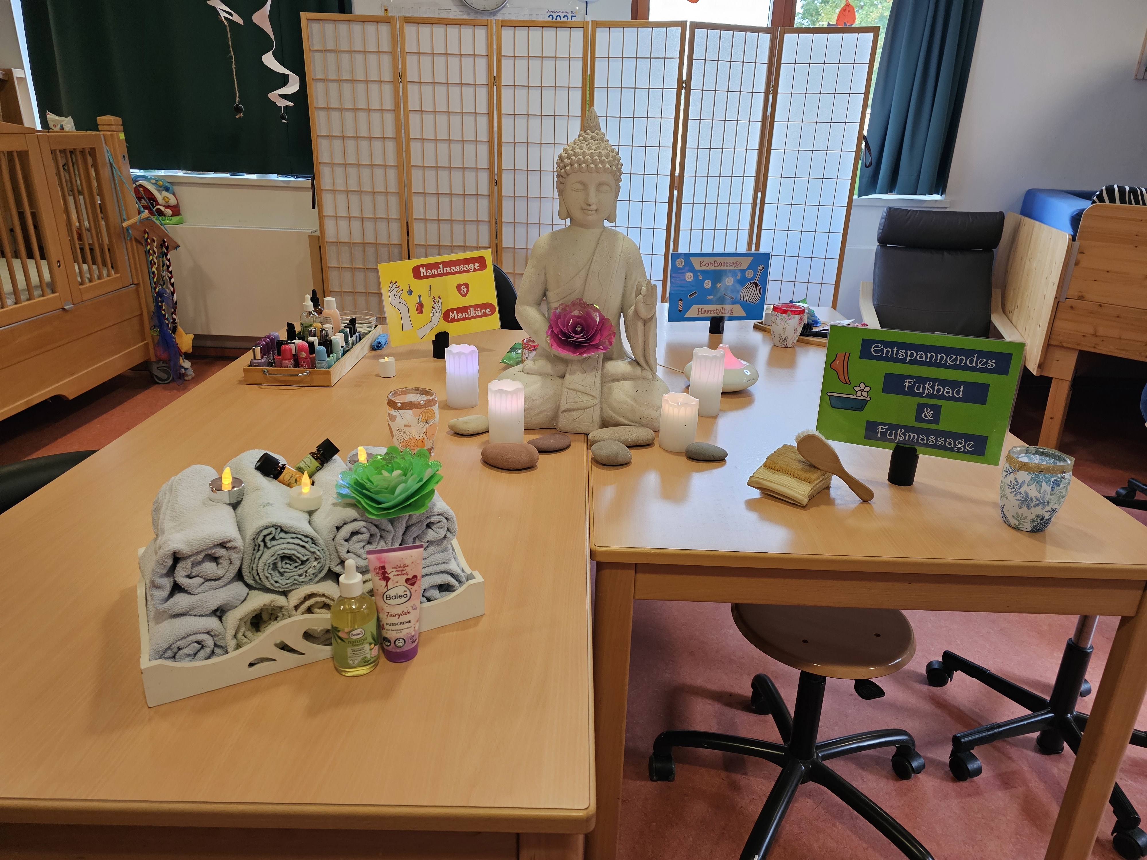 ​In der Wellness-Oase FS5  konnte man am 15.10.25 bei verschiedenen Angeboten z.B Massage, Fußbäder, Klangschale und Haarstyling in einer ansprechenden Atmosphäre die Zeit genießen.