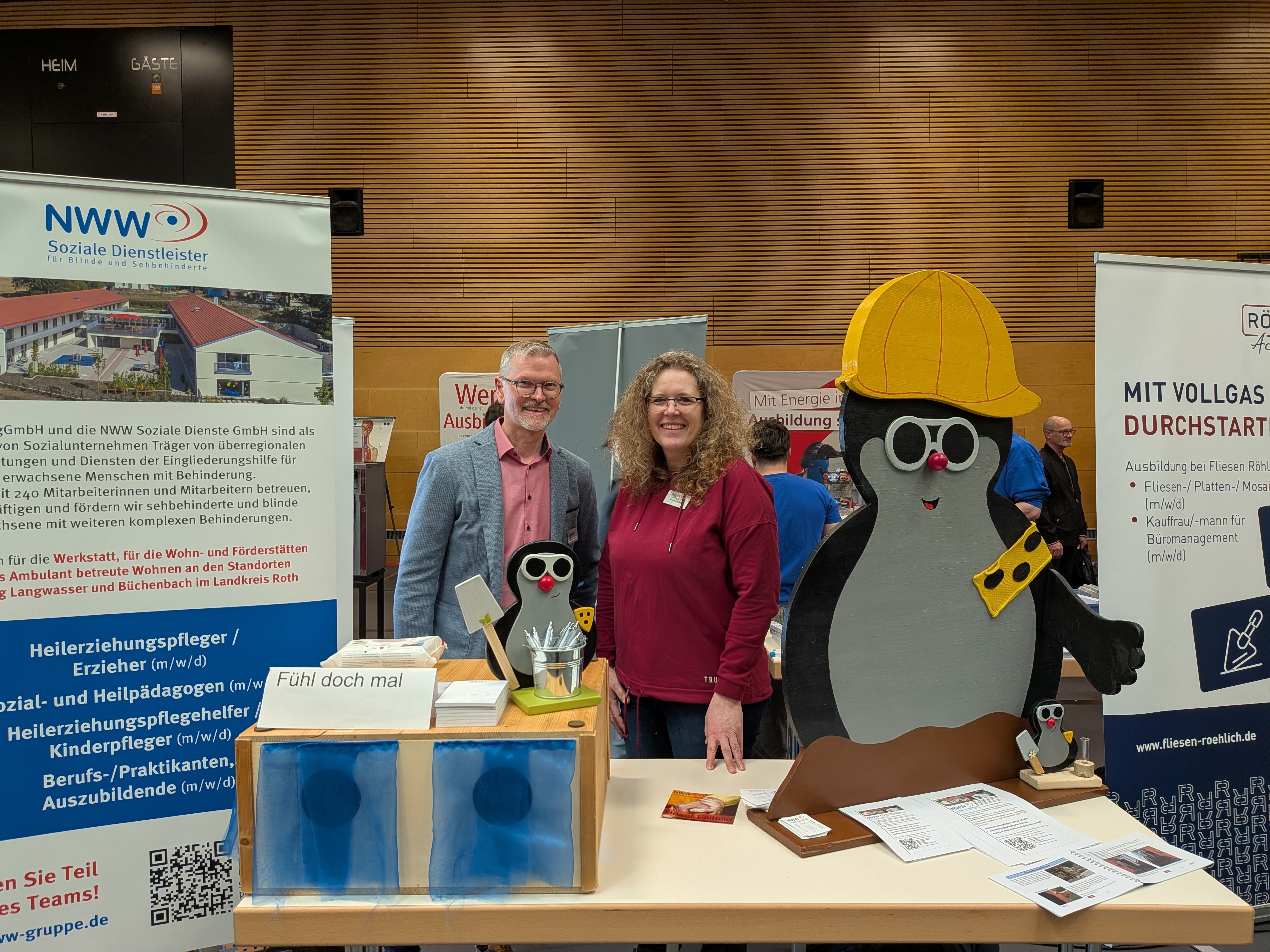 Am 21. März öffnete die Mittelschule Wendelstein ihre Türen für den diesjährigen Berufemarkt. Unter den zahlreichen Ausstellern war auch die NWW vertreten, um Schülern und Eltern Einblicke in die vielfältigen Arbeitsfelder im sozialen Bereich zu geben. Frau Hofer und Herr Pfeiffer waren als kompetente Ansprechpartner vor Ort. In ihrer Funktion erklärten sie den interessierten Jugendlichen nicht nur die täglichen Aufgaben in einer Einrichtung für Menschen mit Behinderung, sondern zeigten auch die verschiedenen Karrierewege auf – vom Praktikum und dem Freiwilligen Sozialen Jahr (FSJ) bis hin zur Ausbildung als Heilerziehungspfleger oder Hauswirtschafter.Der Stand der NWW war gut besucht, und es konnten viele wertvolle Gespräche über berufliche Perspektiven und die Bedeutung von Inklusion geführt werden. Ein herzliches Dankeschön gilt der Mittelschule Wendelstein für die hervorragende Organisation dieses wichtigen Austauschs zwischen Schule und Arbeitswelt